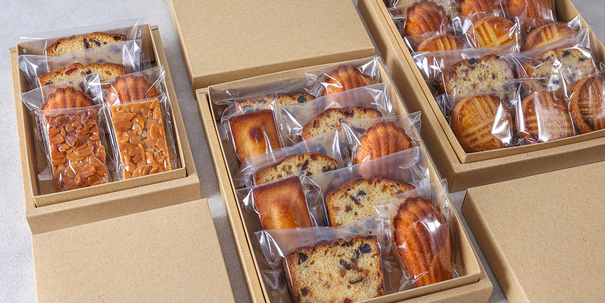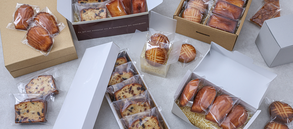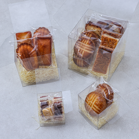 詰め合わせる焼き菓子のサイズや個数に合わせて、また店舗でのストックに最適な入り数に合わせてお使いください。