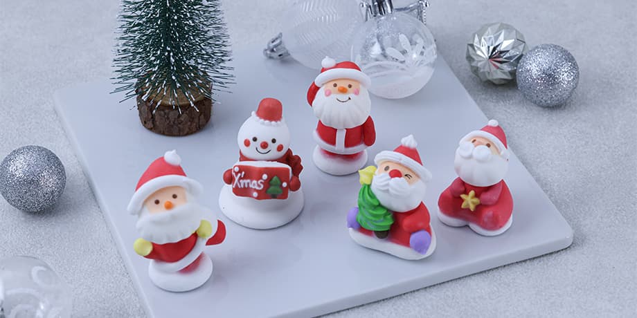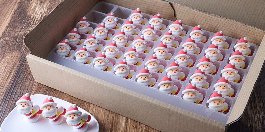 クリスマスケーキのデコレーションに欠かせないメレンゲサンタやチョコプレートなどのケース販売がスタートしました。