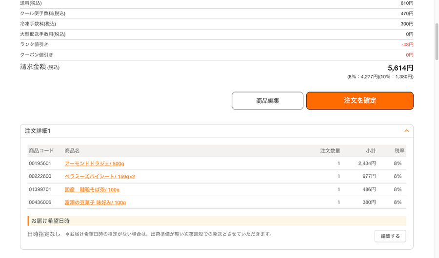 [注文確認]画面に再び遷移し、クーポンが利用された形となる。